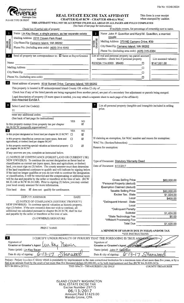 | 1 | 07/12/2017 | QCD | Quit Claim Deed | DONOVAN, LINDA M | DONOVAN, LINDA M | | | $0.00 | 30256 | 4426568 |