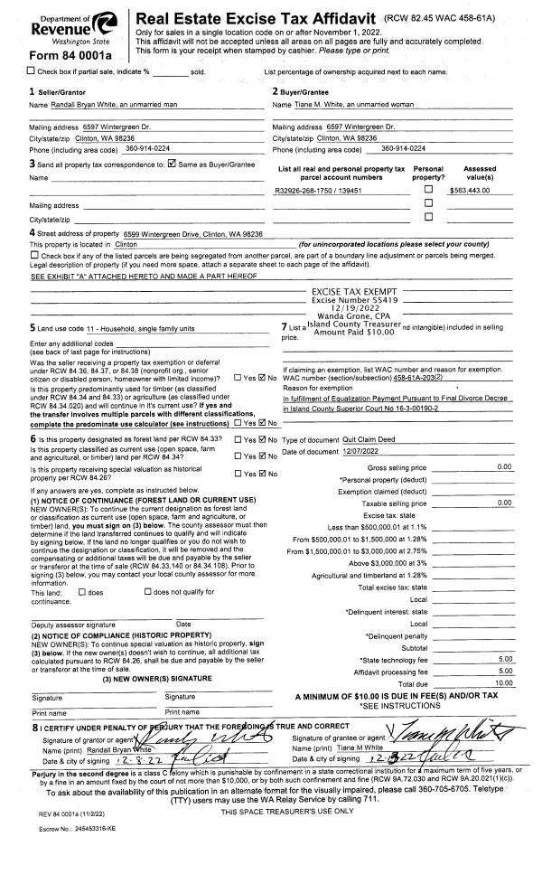 | Mailing Address: | 869 CEDAR LN CAMANO ISLAND, WA 98282 | % Ownership: | 100.0000000000% |