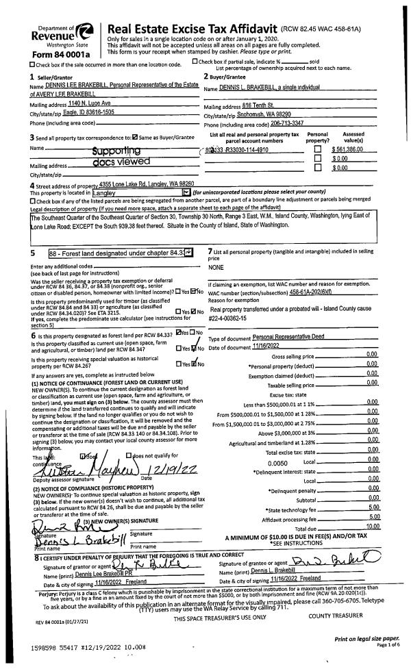 | Mailing Address: | 286 HACKBERRY LANE CAMANO ISLAND, WA 98282 | % Ownership: | 100.0000000000% |