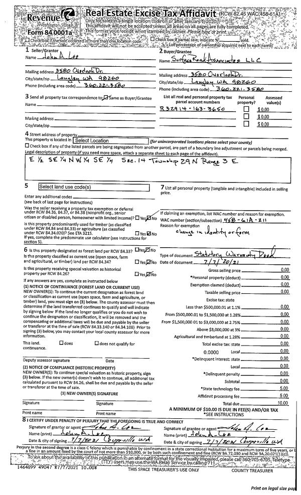 | Tax Area: | 719 - APPRAISER-S Whid Schl Dist, outside Langley, vacant & 50 acres or less | Land Use Code | 99 |