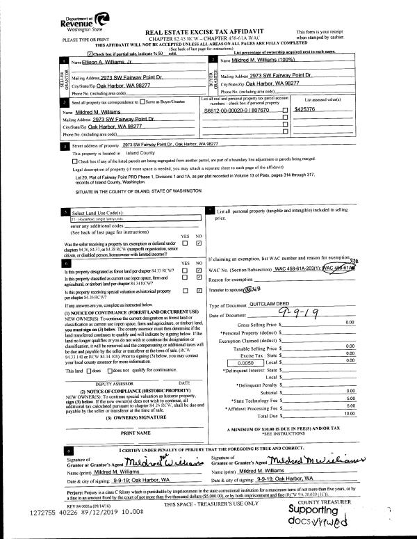 | 3 | 08/15/2019 | EZ | Easement | HOWARD, KEITH JAY | PUGET SOUND ENERGY | | | $22,700.00 | 40188 | 4471066 |