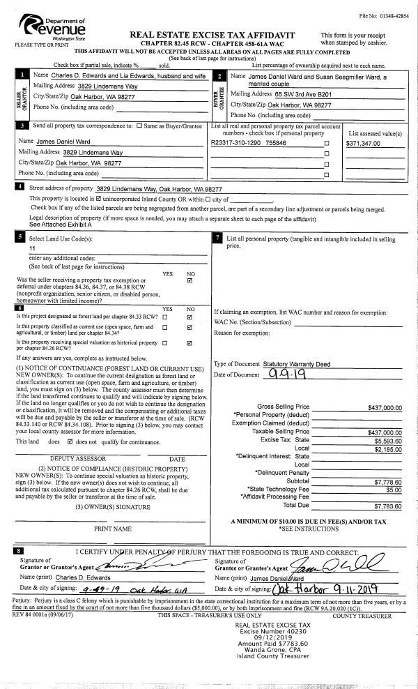 | 2 | 08/15/2019 | EZ | Easement | HOWARD, KEITH JAY | PUGET SOUND ENERGY | | | $22,700.00 | 40188 | 4471066 |