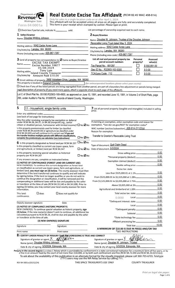 | Mailing Address: | 1096 SW CASTILLIAN DR OAK HARBOR, WA 98277 | % Ownership: | 100.0000000000% |