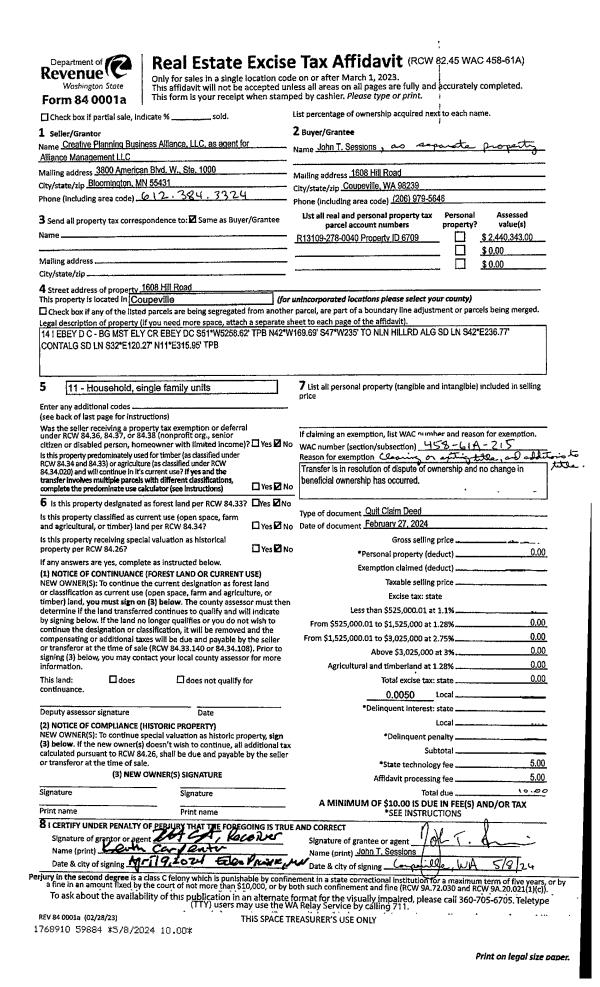 | Mailing Address: | WILLIAM RICHARD JOHNS 1144 SW 8TH AVE OAK HARBOR, WA 98277 | % Ownership: | 100.0000000000% |