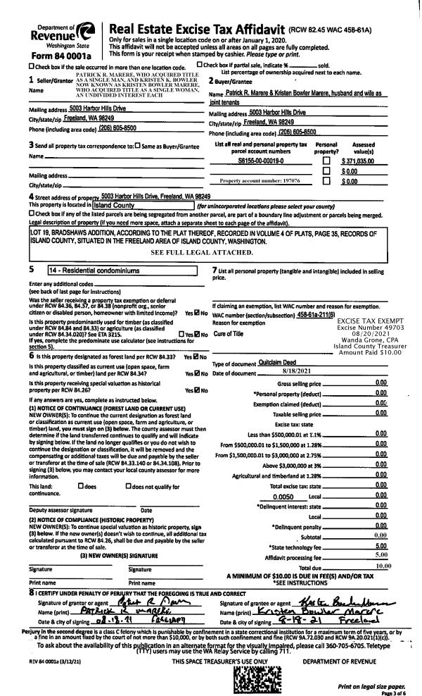 | Mailing Address: | 5103 CROATIAN WAY ANACORTES, WA 98221 | % Ownership: | 100.0000000000% |