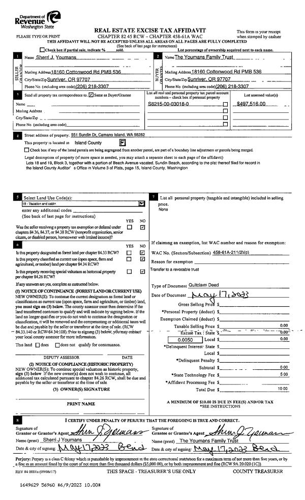 | Mailing Address: | REBECCA L ANDERSON 4175 HEARTH CT OAK HARBOR, WA 98277 | % Ownership: | 100.0000000000% |