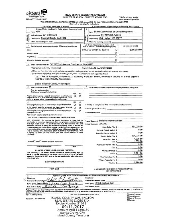 | 3 | 10/18/2005 | WD | Warranty Deed | NORTHWEST EXCHANGE AND TRUSTEE | CANDACE JORDAN INC, | | | $220,000.00 | 55289 | 4151445 |