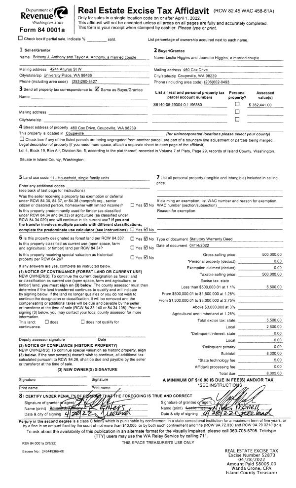 | Mailing Address: | 6513 CENTRAL AVE CLINTON, WA 98236 | % Ownership: | 100.0000000000% |