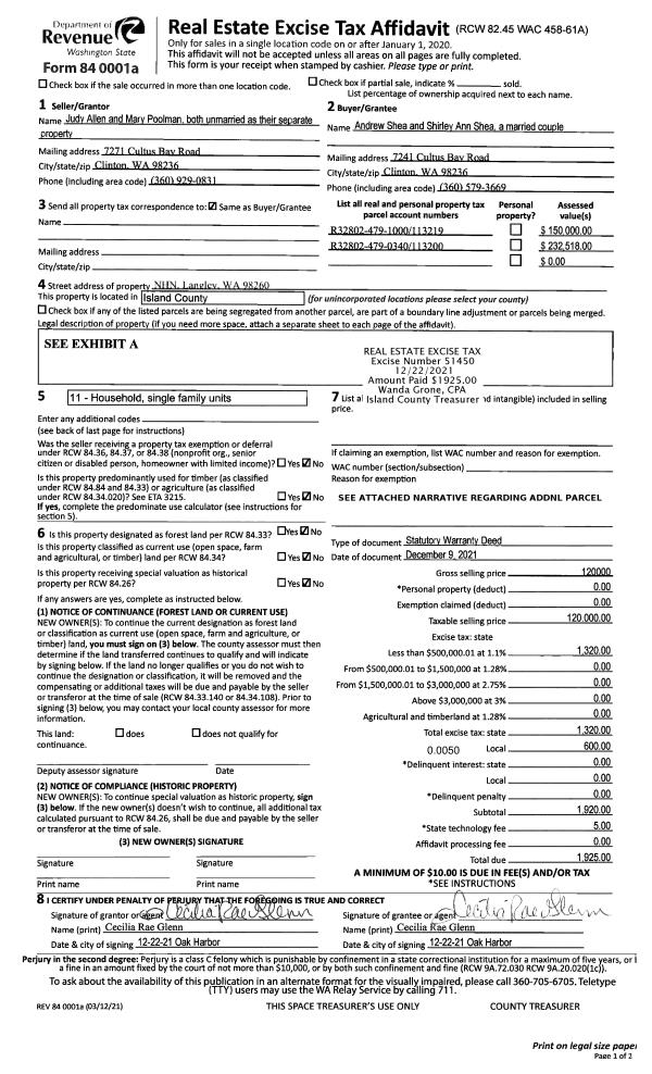 | Mailing Address: | 5579 BAYVIEW RD LANGLEY, WA 98260 | % Ownership: | 100.0000000000% |