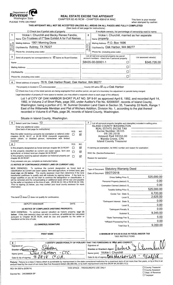 | Mailing Address: | LARRY G WINTON 6484 CENTRAL AVE CLINTON, WA 98236 | % Ownership: | 100.0000000000% |
