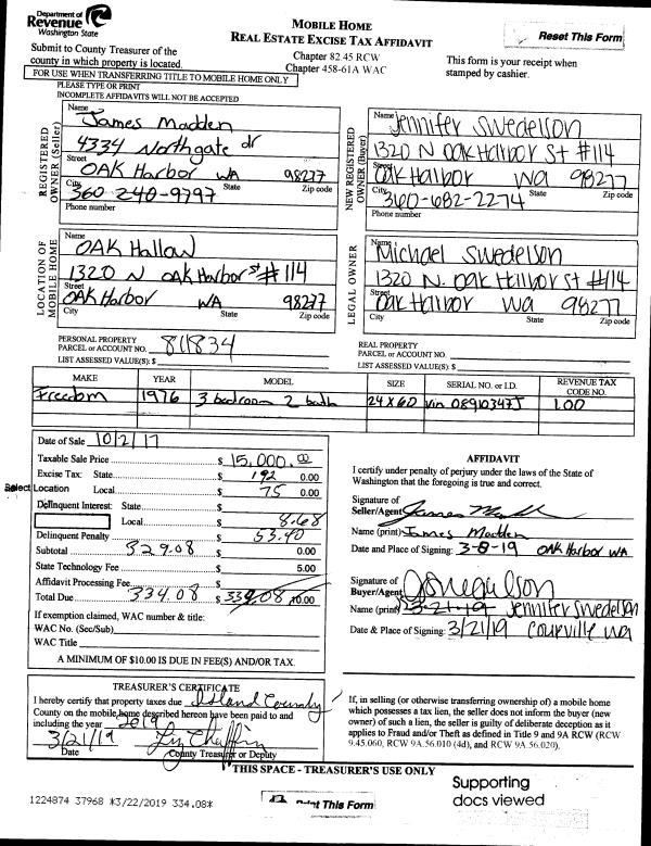 | Mailing Address: | PO BOX 434 CLINTON, WA 98236 | % Ownership: | 100.0000000000% |