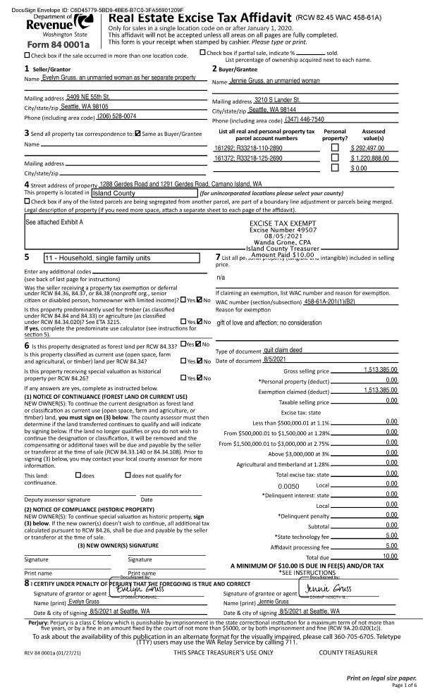 | Mailing Address: | 6591 SIMMONS DR CLINTON, WA 98236-9636 | % Ownership: | 100.0000000000% |