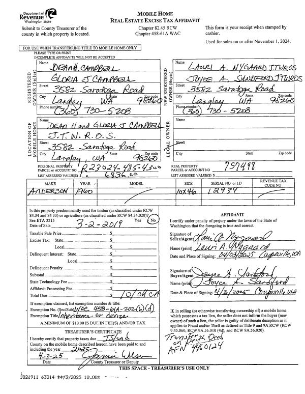 | 6 | 04/01/1993 | PRD | Personal Representatives Deed | STEPHENSON, ROY E | MILTON, JAMES S | | | $30,000.00 | 31263 | 93006694 |