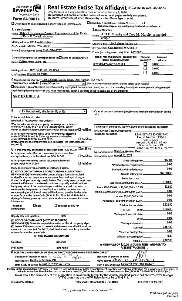 | SWHIDPRBD | P & R S Whidbey BOND | 0.0152817568 | $595,650 | $595,650 | $9.10 | | |