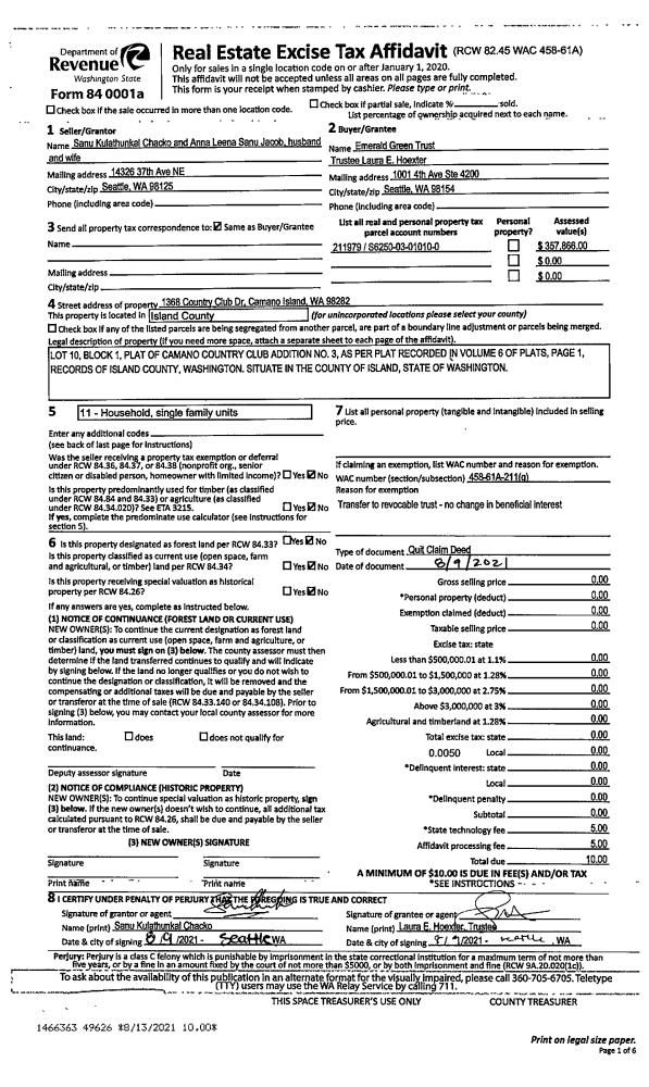 | Mailing Address: | ERIN GUTZMER ERIN IDDINS 6562 SIMMONS DR CLINTON, WA 98236 | % Ownership: | 100.0000000000% |