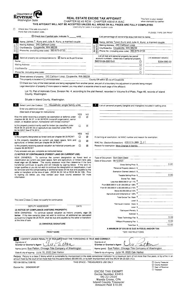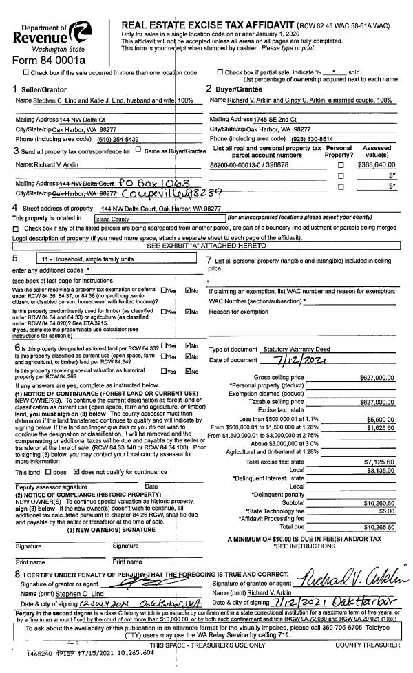 | Mailing Address: | 1767 ALLIANCE AVE APT #216 FREELAND, WA 98249 | % Ownership: | 100.0000000000% |