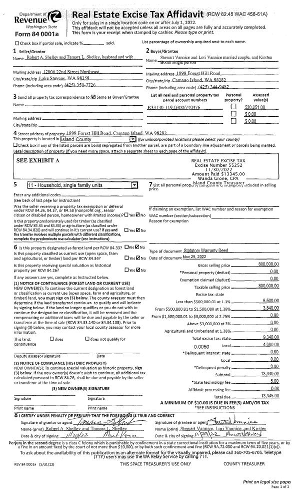 | Mailing Address: | 6253 HINMAN DR CLINTON, WA 98236 | % Ownership: | 100.0000000000% |