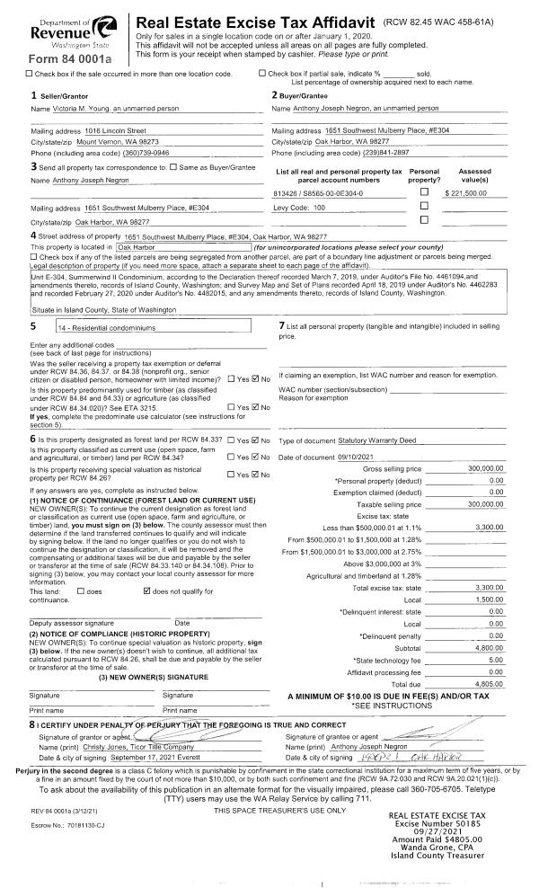 | Mailing Address: | 4739 DURHAM WAY CLINTON, WA 98236-9511 | % Ownership: | 100.0000000000% |