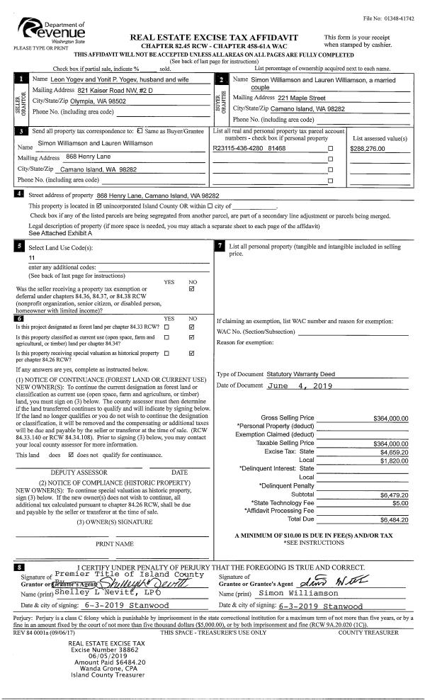 | Mailing Address: | 4738 DURHAM WAY CLINTON, WA 98236 | % Ownership: | 100.0000000000% |