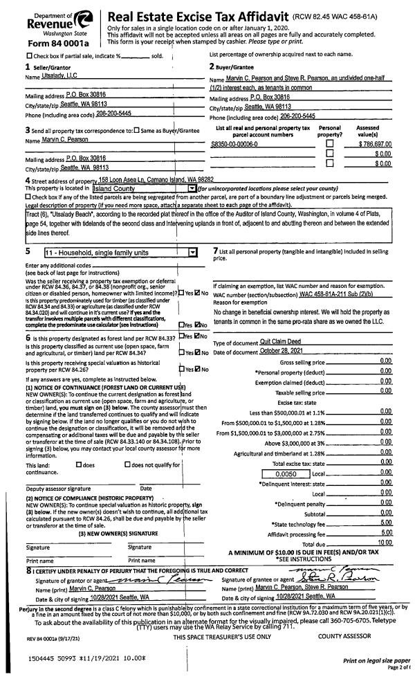 | Mailing Address: | 6265 BOB GALBREATH RD CLINTON, WA 98236-9527 | % Ownership: | 100.0000000000% |