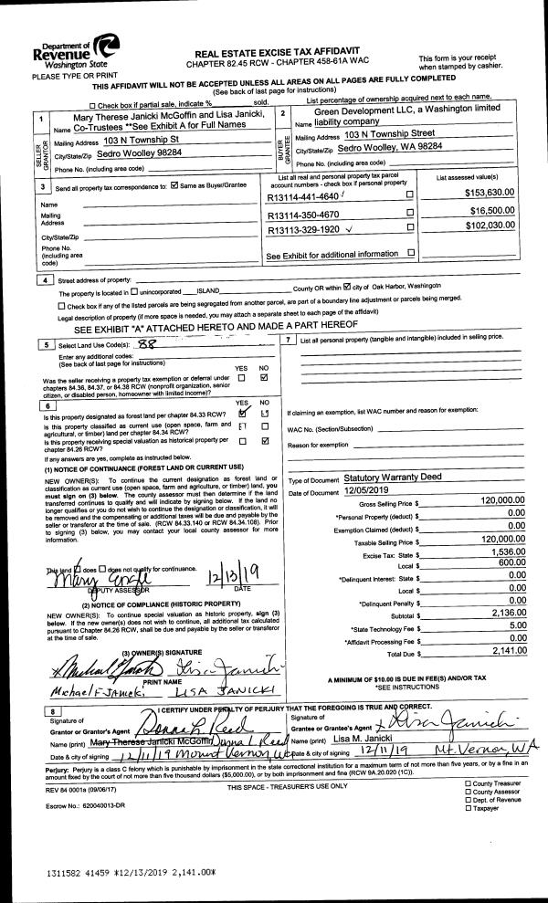 | 1 | 08/28/2019 | EZ | Easement | GARDNER, JIM R | PUGET SOUND ENERGY | | | $6,460.00 | 40558 | 4472718 |