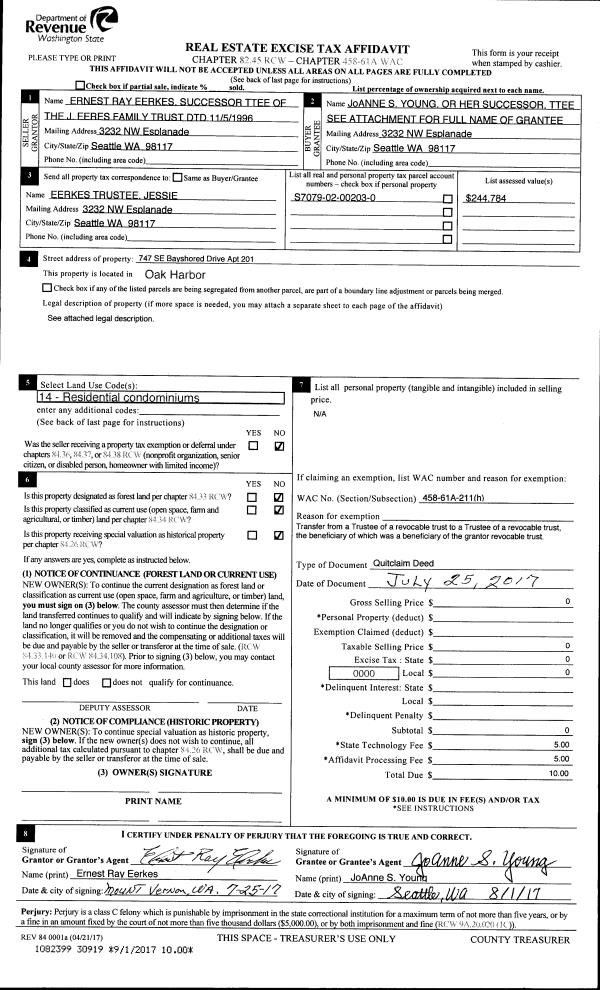 | Mailing Address: | ERIK HJORTEN 1261 ARNOLD RD OAK HARBOR, WA 98277 | % Ownership: | 100.0000000000% |