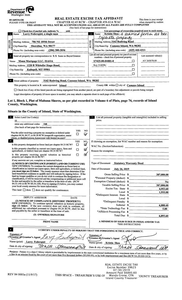 | Mailing Address: | 322 ALVERSON BLVD EVERETT, WA 98201 | % Ownership: | 100.0000000000% |