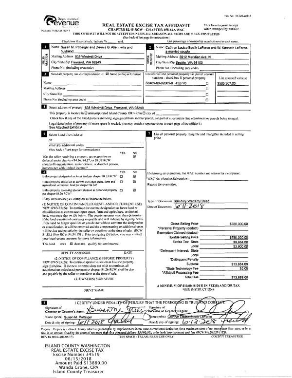 | 6 | 11/17/2002 | WD | Warranty Deed | SOUND POSSESSION INC, | DEJAGER, TERRENCE J | | | $7,500.00 | 24173 | 4038447 |
