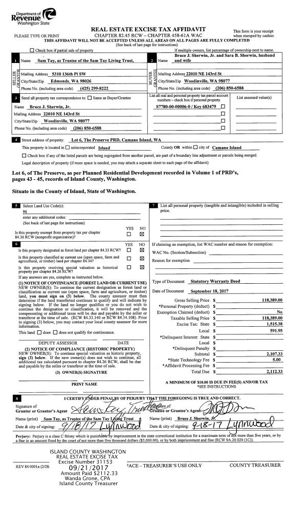 | 6 | 03/01/1992 | WD | Warranty Deed | NEIDLINGER, BUELL/MARGARET | NEIDLINGER, BUELL/MARGARE | | | $132,500.00 | 21024 | 92005128 |