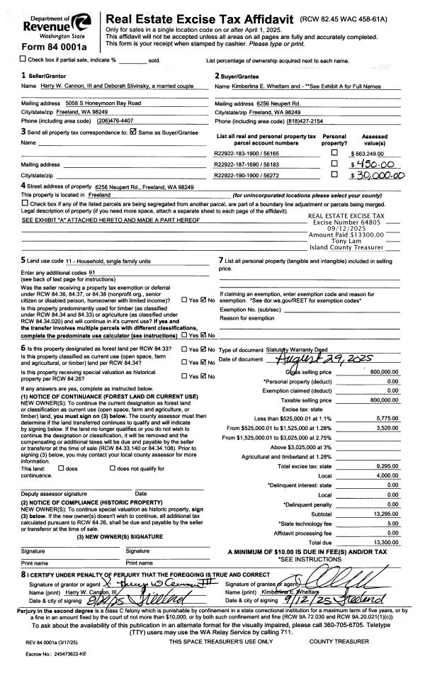 | Mailing Address: | PO BOX 1003 COUPEVILLE, WA 98239-1003 | % Ownership: | 100.0000000000% |