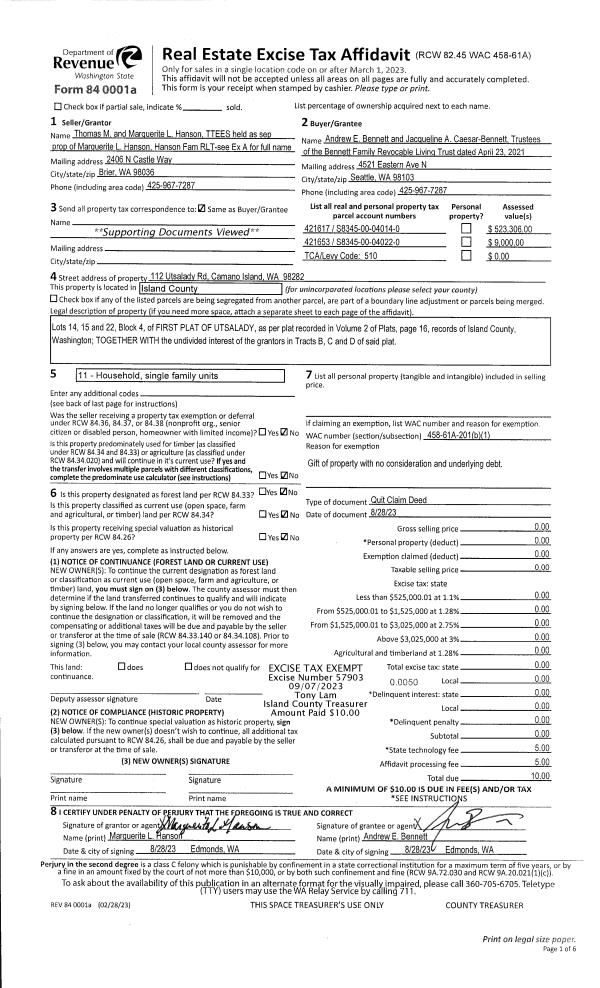 | FIRE2 | Fire & Rescue Dist #2 N Whidbey GEN | 0.5475949600 | $482,690 | $482,690 | $264.32 | | |