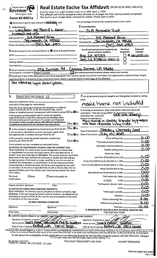 | Mailing Address: | 901 GAINSBOROUGH RD COUPEVILLE, WA 98239 | % Ownership: | 100.0000000000% |