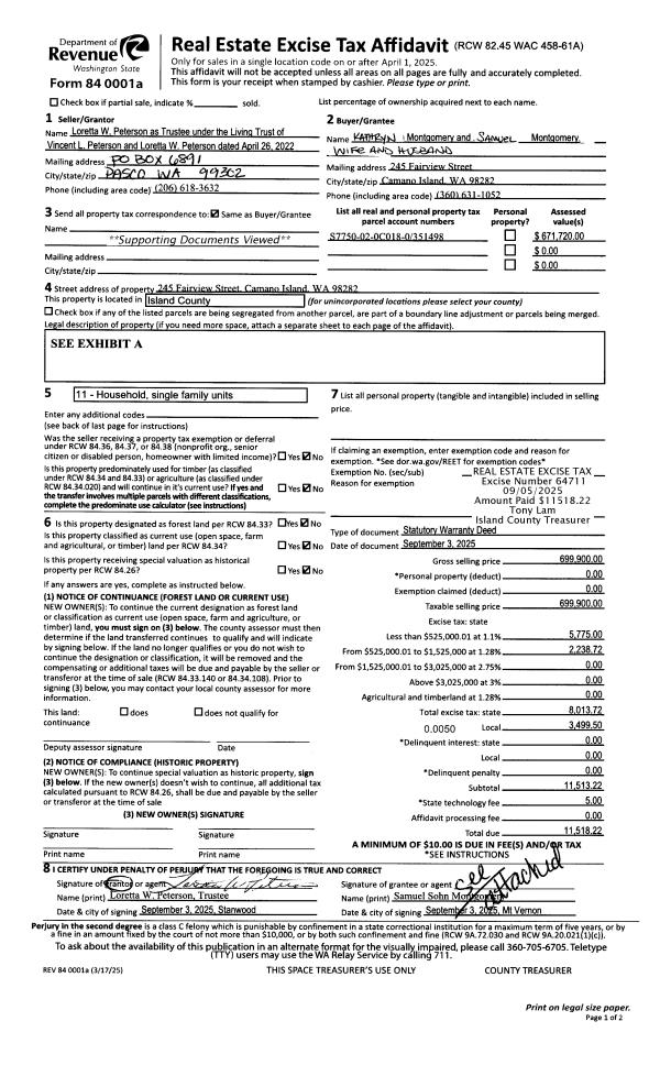 | Mailing Address: | 115 DONAHEY RD COUPEVILLE, WA 98239-9633 | % Ownership: | 100.0000000000% |