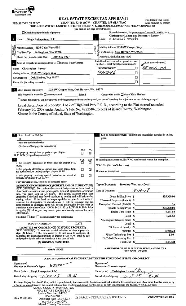 | Mailing Address: | CATHERINE JEAN HARDESTY 1115 CUSTER ST OAK HARBOR, WA 98277 | % Ownership: | 100.0000000000% |
