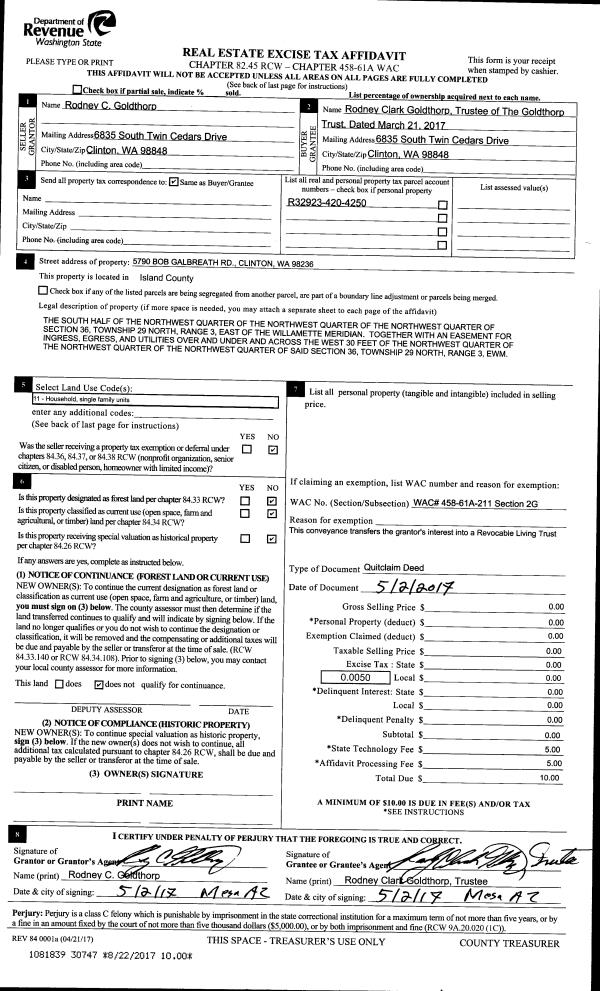 | Mailing Address: | 520 OLYMPIC VIEW DR COUPEVILLE, WA 98239 | % Ownership: | 100.0000000000% |