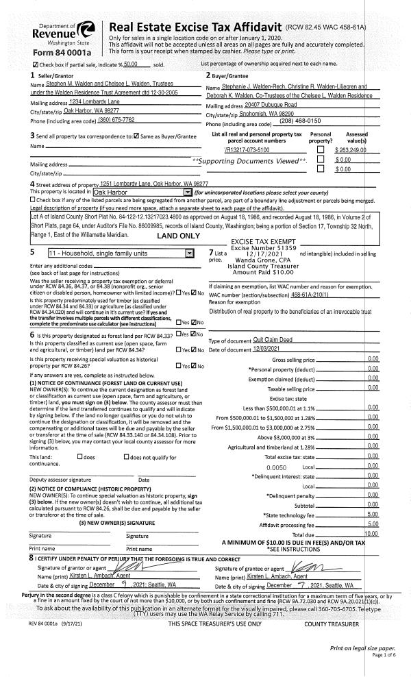 | Mailing Address: | 1131 CUSTER ST OAK HARBOR, WA 98277 | % Ownership: | 100.0000000000% |