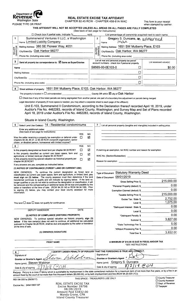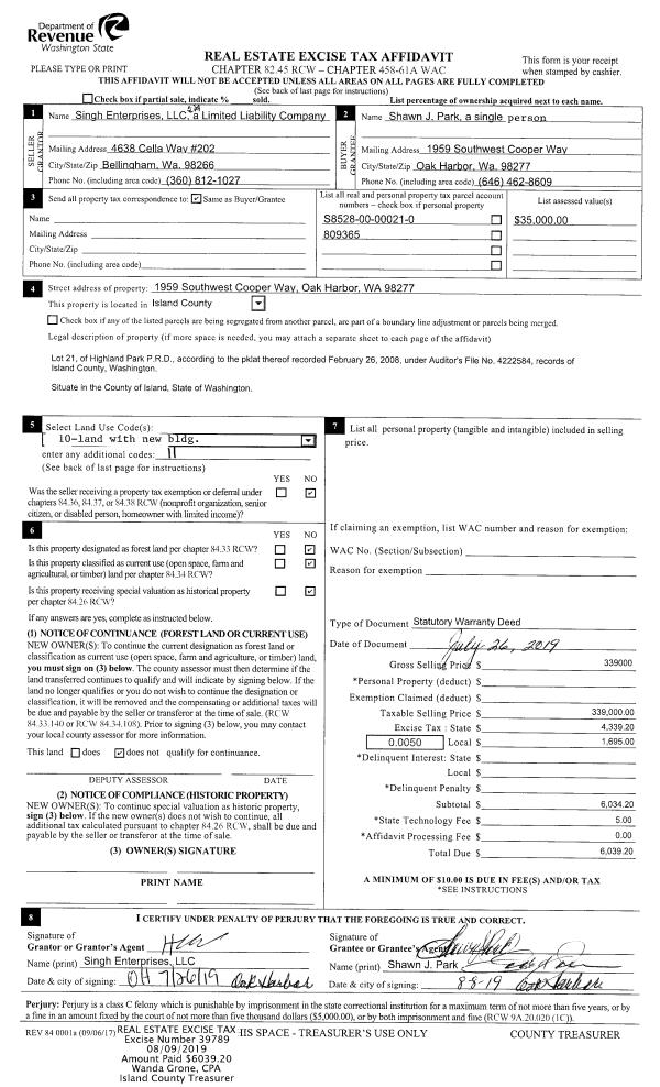 | Mailing Address: | 2118 CROSSWOODS CIR OAK HARBOR, WA 98277 | % Ownership: | 100.0000000000% |