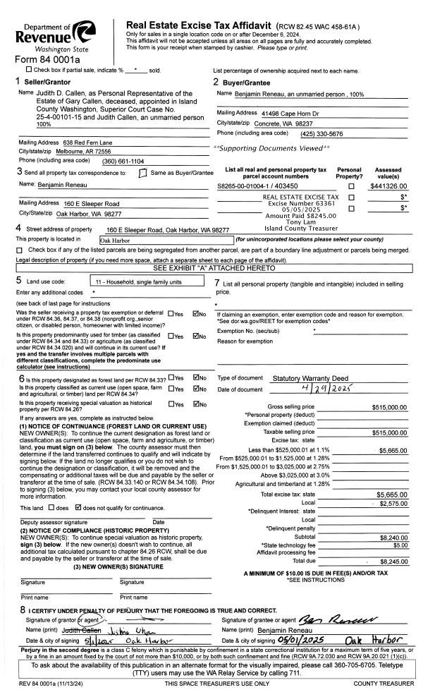 | Mailing Address: | 2131 CROSSWOODS CIR OAK HARBOR, WA 98277 | % Ownership: | 100.0000000000% |