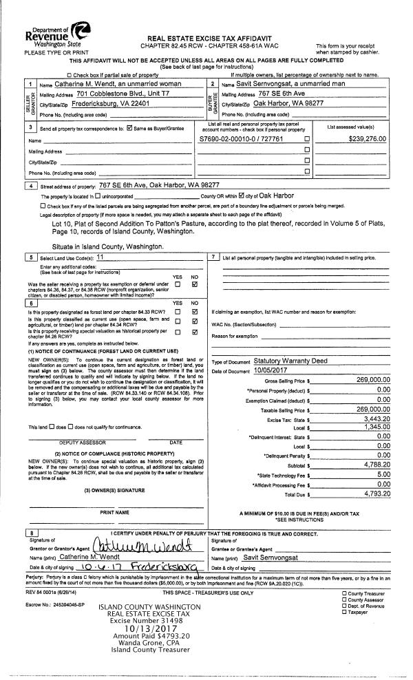 | Mailing Address: | DARLENE E DANDO 18050 W BIG LAKE BLVD MOUNT VERNON, WA 98274 | % Ownership: | 100.0000000000% |
