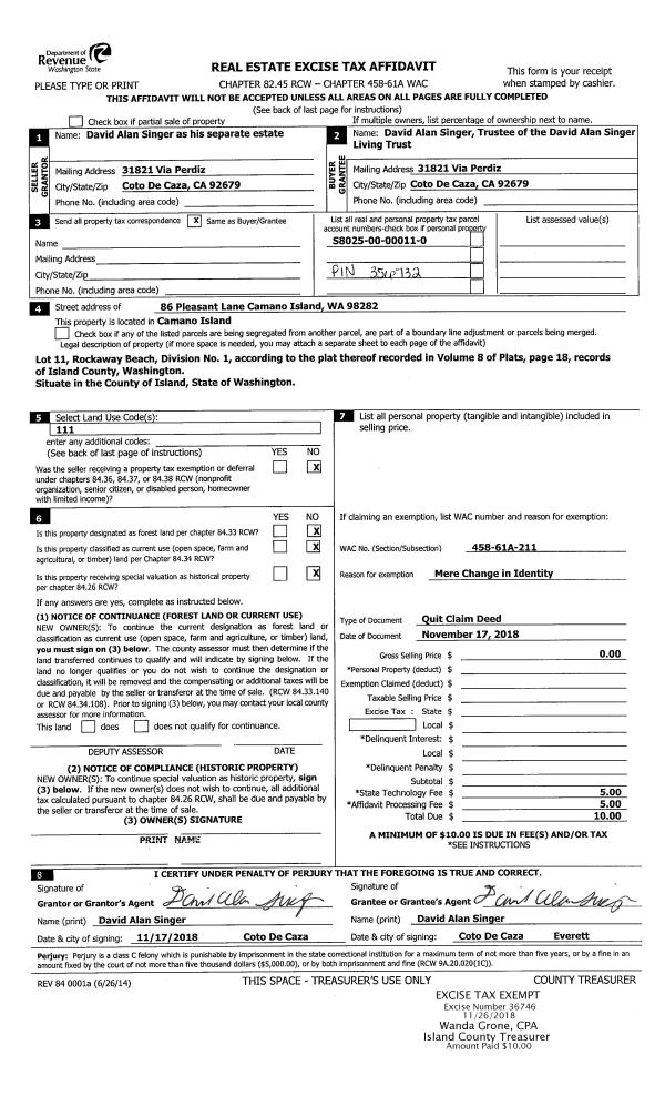 | Mailing Address: | 2118 WINTERHAWK LN COUPEVILLE, WA 98239 | % Ownership: | 100.0000000000% |