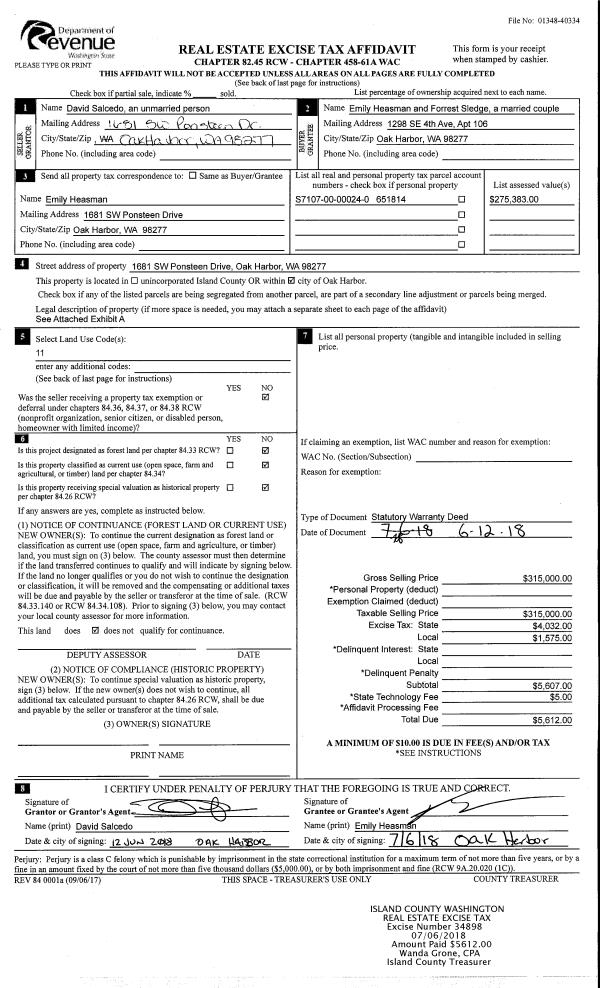 | Mailing Address: | 1209 LIBERTY LN OAK HARBOR, WA 98277 | % Ownership: | 100.0000000000% |