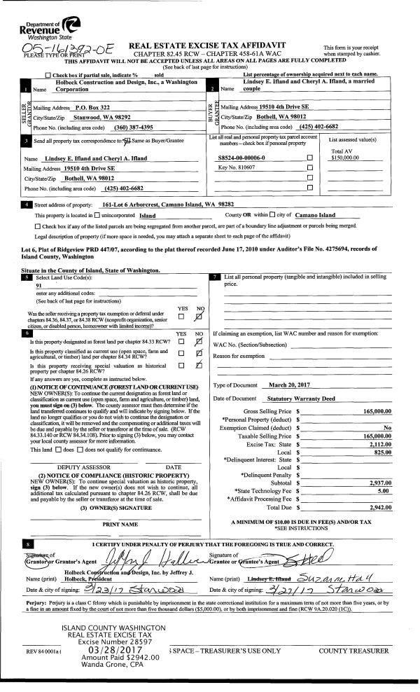 | Mailing Address: | 2179 COLONIAL WAY OAK HARBOR, WA 98277 | % Ownership: | 100.0000000000% |