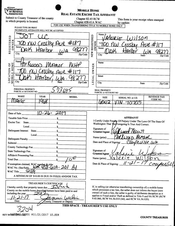 | Mailing Address: | 2192 HERITAGE WAY OAK HARBOR, WA 98277 | % Ownership: | 100.0000000000% |
