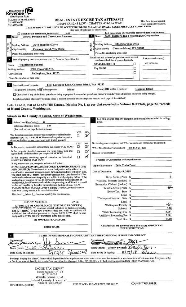 | Mailing Address: | PO BOX 55 FREELAND, WA 98249 | % Ownership: | 100.0000000000% |