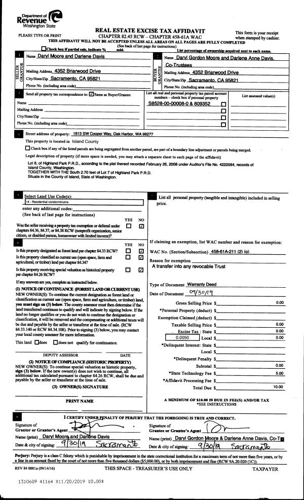 | Mailing Address: | 11248 STATE ROUTE 525 CLINTON, WA 98236 | % Ownership: | 100.0000000000% |