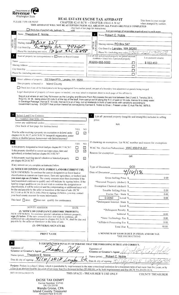 | Mailing Address: | 4997 DECEPTION CIRCLE OAK HARBOR, WA 98277 | % Ownership: | 100.0000000000% |