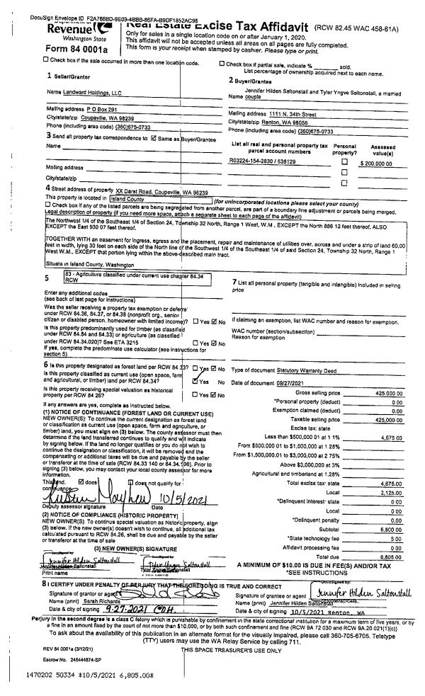 | Mailing Address: | LIVING TRUST U/T/A DATED OCTOBER 20, 2020 688 SCENIC HTS RD OAK HARBOR, WA 98277 | % Ownership: | 100.0000000000% |