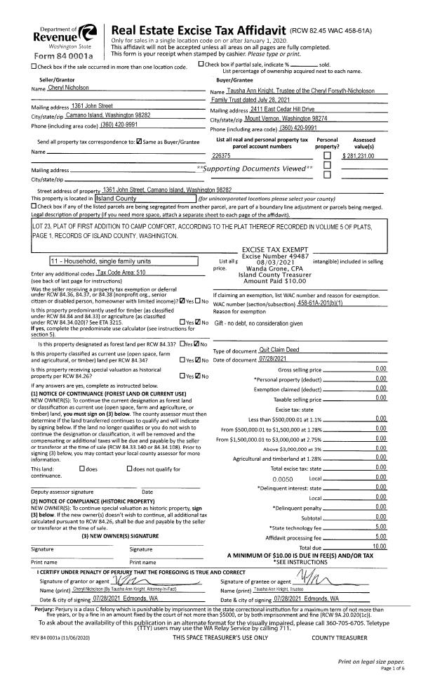 | Tax Area: | 710 - APPRAISER-S Whid Schl Dist, outside Langley, improved & 1 acre or less | Land Use Code | 11 |