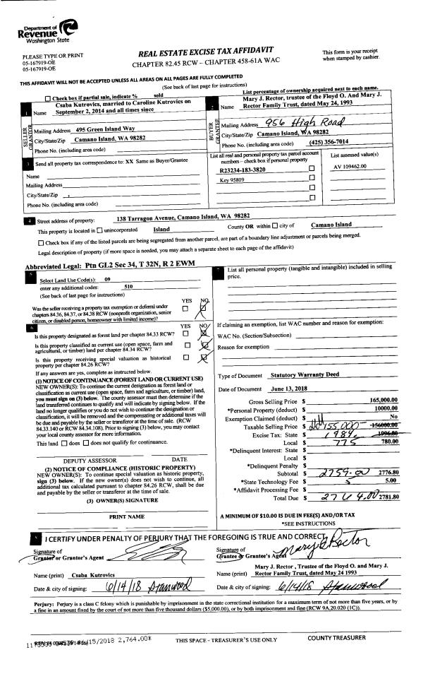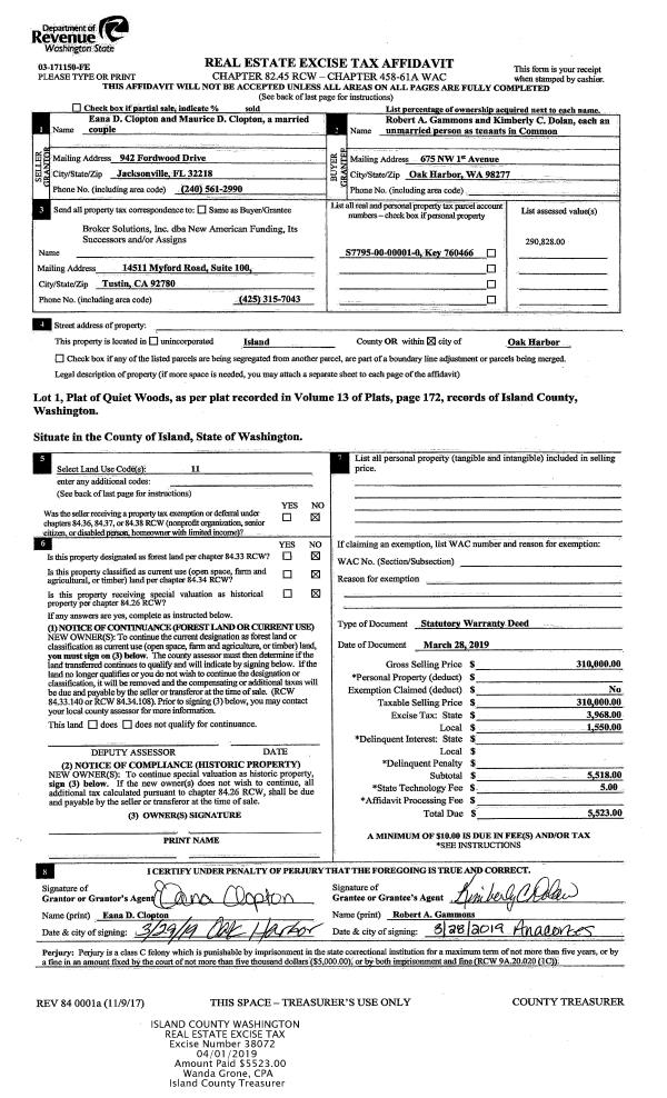 | 1 | 01/04/2019 | QCD | Quit Claim Deed | TILSON, WAYNE | NORTHWEST MANAGEMENT WA, LLC | | | $0.00 | 37562 | 4459150 |