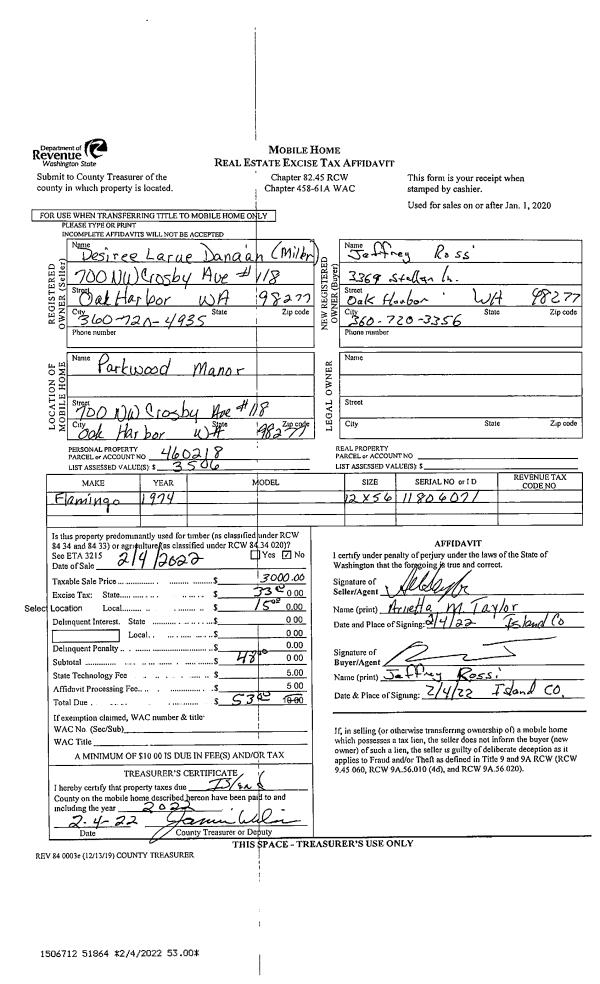 | Mailing Address: | 31 EDGEWATER DR CAMANO ISLAND, WA 98282 | % Ownership: | 100.0000000000% |